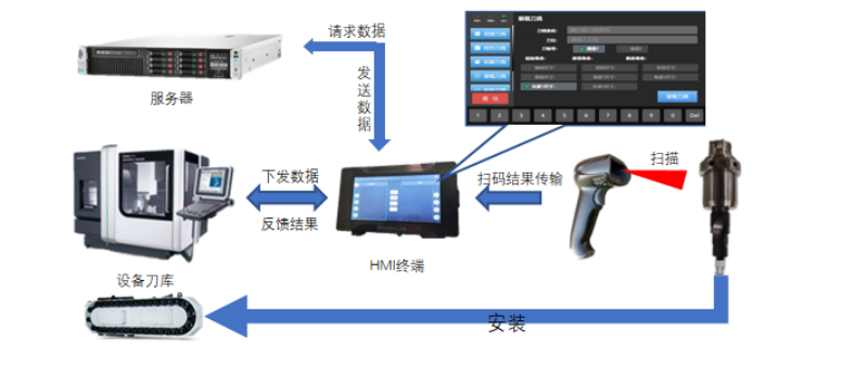 Transformation is never a quick fix, making the cutting tool intelligent through software also plays a key role in the whole transformation and upgrade. The latest technology is not necessarily the best solution. Based on the workshop site research, the Masterlink team finally chose a bar-code recognition solution that is more in line with the current situation and more economical and practical, combining the features of easy bar-code symbol creation, simple and easy scanning operation, low false code rate of recognition, fast information collection, high reliability, flexibility and practicality, freedom and low cost in RFID and bar-code recognition. It achieves automatic data collection and recognition and automatic transmission to the server, thus replacing the manual data entry of the past.