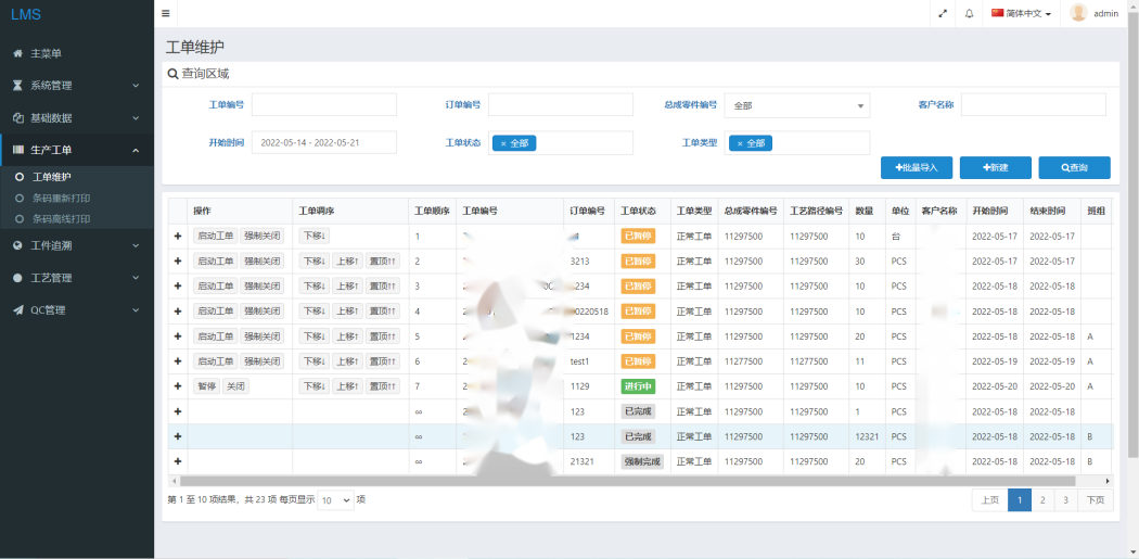 The corresponding work order plan is generated in the Work Order Management interface according to the production plan of the day.