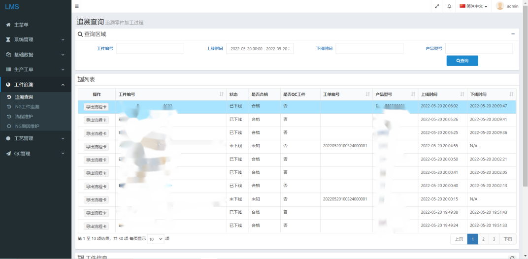The rework operation is carried out in conjunction with the production line PDA or HMI and the rework information is presented in the corresponding operable interface.